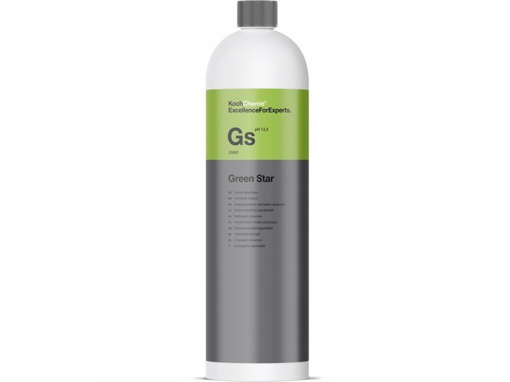 Green Star je perfektní univerzální čistič, který si poradí se všemi silnějšími nečistotami jak v exteriéru, tak i v interiéru Vašeho auta. Green Star je alkalický čistič, který byl pečlivě testován v německých laboratořích, aby byl šetrný ke všem materiálům. Nepoškodí ani klavírní lak a chromované nebo eloxované lišty. Vyšší pH čističe dokáže oslabit vosk i keramickou ochranu. Vždy se proto ujistěte, jakou pH odolnost má Vámi nanesená ochrana laku. Díky svojí koncentraci je tento čistič velmi výkonný a zároveň ekonomický.